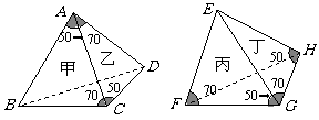 (A)甲、乙全等,丙、丁全等 (B) 甲、乙全等,丙、丁不全等