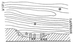 29.下图为“某城市某日清晨低层大气剖面图”,读图回答问题。(5分)