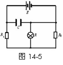 3.(★★★★)如图14-7所示,E=10 V,R1=4 Ω,R2=6 Ω,C=30 μF,电池内阻可忽略.