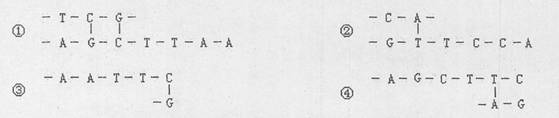 11.下列黏性末端属于同一种限制酶切割而成的是: ( )