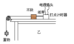 一木块放在水平光滑长木板上,左侧拴有一不可伸长的细软线,跨过固定在木板边缘的滑轮与一重物相连,重物的质量为m .木块右侧与穿过打点计时器的纸带相连,在重物牵引下,木块在木板上向左做匀加速运动。图甲给出了打点计时器在纸带上打出的一些连续的点,它们之间的距离分别为S1、S2、S3、S4、S5、S6,打点计时器所用交流电周期为T。