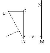 如图所示,有一截面是直角三角形的棱镜ABC,∠A=30º.它对红光的折射率为n1.对紫光的折射率为n2.在距AC边d处有一与AC平行的光屏。现有由以上两种色光组成的很细的光束垂直AB边射入棱镜.