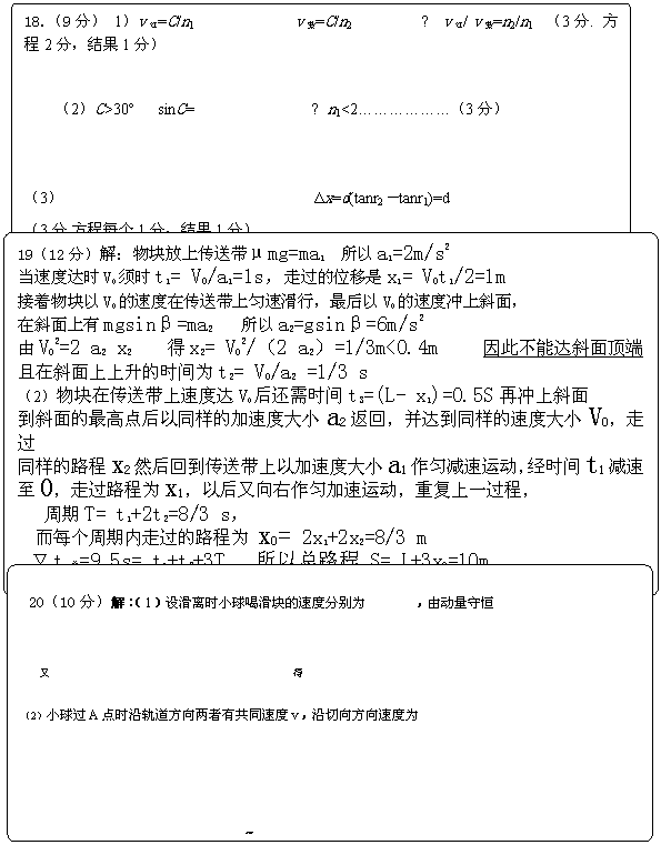 18.如图所示,已水平传送带以2m/s的速度传送物块,水平部分长为2m,其右端与一倾角为β=370的光滑斜面相连,斜面长为0.4m,一物块无初速度地放在传送带的最左端,已知物块与传送带间的动摩擦因数为