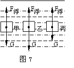 材料不同的甲、乙、丙三个物体的体积均为10-3m3,浸没在水中。