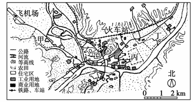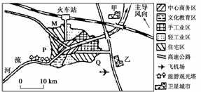 (3)拟在甲、乙两处规划建设高新技术工业城和石油化工城两座卫星城市。石油化工城应建在 处,