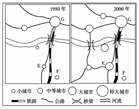 (1)1950年至2000年,该地区城市发展变化的特征是 、 、