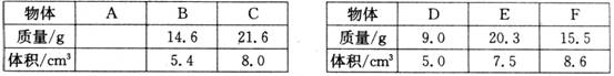 (5)一个与D相同物质组成的物体,体积是10cm3,它的质量是 g。