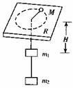 再选小球M、物体m1与地球所组的系统为研究对象,研究两物体间的轻线剪断后物体m1上升的过程,由于只有重力做功,所以系统的机械能守恒.选小球做匀速率圆周运动的水平面为零势面,设小球沿半径为R的轨道做匀速率圆周运动时物体m1到水平板的距离为H,根据机械能守恒定律有: