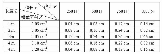 (1)请根据测试结果,推导出伸长量x与材料的长度L、材料的横截面积S及拉力F之间的函数关系.(形式为x=__________)