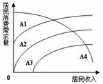 消费是我们日常生活中不可缺少的部分,居民收入直接影响居民消费需求。在下图中,合理表示居民收入与居民消费需求量的关系的是