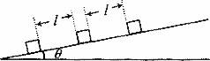 如图所示,倾角为θ的斜面上静止放置三个质量均为m的木箱,相邻两木箱的距离均为l。工人用沿斜面的力推最下面的木箱使之上滑,逐一与其它木箱碰撞。每次碰撞后木箱都粘在一起运动。整个过程中工人的推力不变,最后恰好能推着三个木箱匀速上滑。已知木箱与斜面向的动摩擦因数为µ,重力加速度为g 。设碰撞时间极短,求