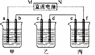 下图所示装置中,甲、乙、丙三个烧杯依次分别盛放100 g 5.00%的NaOH溶液、足量的CuSO4溶液和100 g 10.00%的K2SO4溶液,电极均为石墨电极。