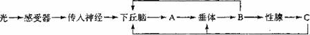 春天日照逐渐延长时,鸟类大多进入繁殖季节。调节鸟类繁殖活动的图解如下: