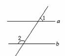 14.如图,直线a∥b,若∠1 = 50°,则∠2 = 。 15.如图,AB∥CD,∠1 = 40°,则∠2 = 。