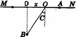 [例2]一辆小车在轨道MN上行驶的速度v1可达到50km/h,在轨道外的平地上行驶速度v2可达到40km/h,与轨道的垂直距离为30km的B处有一基地,如图所示,问小车从基地B出发到离D点100km的A处的过程中最短需要多长时间(设小车在不同路面上的运动都是匀速运动,启动时的加速时间可忽略不计)?