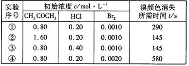 通过测定溴的颜色消失所需的时间来确定。在一定温度下,获得如下实验数据: