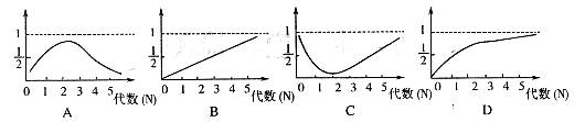 20.若让某杂合体连续自交,那么能表示自交代数和纯合体比例关系的是