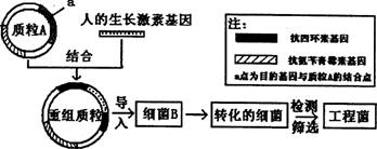 15、下图是将人的生长激素基因导入细菌B细胞内制造“工程菌”的示意图。已知细菌B细胞内不含质粒A,也不含质粒A上的基因。判断下列说法正确的是( )