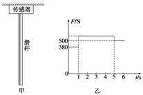 16.(8分)如图甲所示为学校操场上一质量不计的竖直滑杆,滑杆上端固定,下端悬空.为了研究学生沿杆的下滑情况,在杆顶部装有一拉力传感器,可显示杆顶端所受拉力的大小.现有一学生(可视为质点)从上端由静止开始滑下,5 s末滑到杆底时速度恰好为零.以学生开始下滑时刻为计时起点,传感器显示的拉力随时间变化情况如图乙所示,g取10 m/s2.求: