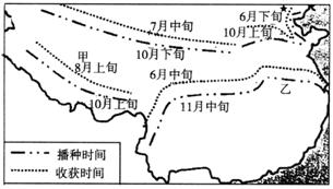 22. 据图分析,与相近纬度相比,甲省该农作物生长时间长短及影响因素正确的是( )