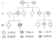 右图为患甲病(显性基因为A,隐性基因为a)和乙病(显性基因为b,隐性基因为b)两种遗传病的系谱图,据图回答: