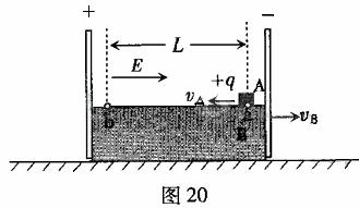 20.(17分)如图20所示,绝缘长方体B置于水平面上,两端固定一对平行带电极板,极板间形成匀强电场E。长方体B的上表面光滑,下表面与水平面的动摩擦因数