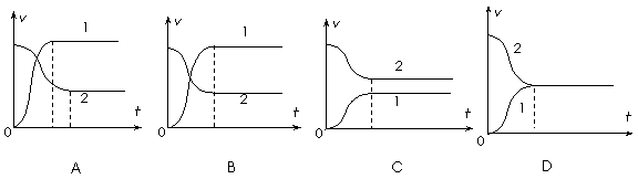 14.在光滑水平地面上有一质量为m1的小球处于静止状态,现有一质量为m2的小球(两球形状完全相同)以一定的初速度匀速向m1球运动,并与m1球发生对心正撞。对于这样的一个作用的过程,可用速度时间图象进行描述,下列四个图象中,图线1表示m1球运动的情况,图线2表示m2球运动的情况。则在这四个图象中可能正确的反映了两球相互作用过程中速率随时间变化关系的是