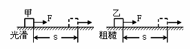 运动相同的距离S。如图所示,甲在光滑面上,乙在粗糙面上,则下列关于力F对甲、乙做的功和甲、乙两物体获得的动能的说法中正确的是( )
