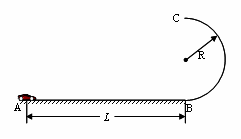 点A出发,沿水平直线轨道运动L后,由B点进入半径为R的光滑竖直半圆轨道,并通过半圆轨道的最高点C,才算完成比赛。B是半圆轨道的最低点,水平直线轨道和半圆轨道相切于B点。已知赛车质量m=0.5kg,通电后以额定功率P=2w工作,进入竖直圆轨道前受到的阻力恒为Ff=0.4N,随后在运动中受到的阻力均可不计,L=10.00m,R=0.32m,(g取10m/s2)。求: