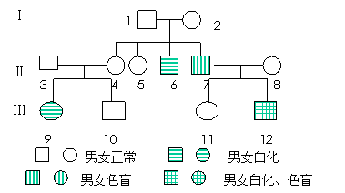 50、如图为某遗传病的系谱图,正常色觉(B)对色盲(b)为显性,为伴性遗传;正常体色(A)对白色(a)为显性,为常染色体遗传。正确的是