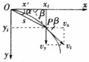 证明:设物体被抛出后ts末时刻,物体的位置为P,其坐标为xt(ts内的水平位移)和yt(ts内的下落高度);ts末的速度vt的坐标分量为vx、vy,将vt速度反向延长交x轴于x',如图: