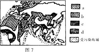 读世界部分地区环境问题分布图(图7),回答13-15题。
