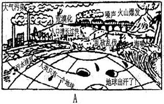 ⑵.A图中由于自然原因造成的环境问题有:__________、__________、__________。