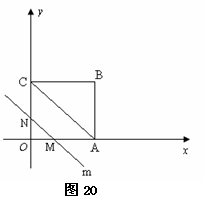 2.(08甘肃白银等9市)28.(12分)如图20,在平面直角坐标系中,四边形OABC是矩形,点B的坐标为(4,3).平行于对角线AC的直线m从原点O出发,沿x轴正方向以每秒1个单位长度的速度运动,设直线m与矩形OABC的两边分别交于点M、N,直线m运动的时间为t(秒).