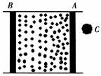 在容器内无摩擦的滑动.现有一质量也为m的泥块C以速度v0撞在A上并黏在