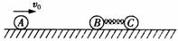 两小球用细线相连,使弹簧不能伸展.小球A以初速度v0沿小球B、C的连线方向向B球运动,相碰后A与B粘合在一起,然后连接B、C的细线受到扰动而突然断开,弹簧伸展,从而使C与A、B分离,脱离弹簧后C的速度为 v0.