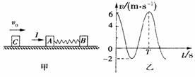 起运动.若在C与A接触前对A施加一个水平向右的瞬时冲量I,从A获得瞬时冲量作用的时刻开始计时,取向右为正方向,其速度随时间变化的图象如图乙所示(C与A未接触前),弹簧始终未超出弹性限度.求: