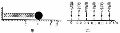 达的最远位置.小球向右经过中间位置O时开始计时,其经过各点的时刻如图乙所示。若测得OA=OC=7cm,AB=3cm,则自0时刻开始: