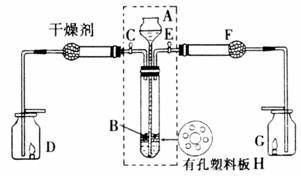 为证明有关物质的性质,某同学设计了如图所示的装置。当打开旋塞C,使液体A与塑料隔板H上的固体B相遇时,即有气体产生,并发现D中的蜡烛(含C20~30烷烃)慢慢熄灭;关闭C打开E时,则看到G中的蜡烛燃得更亮。