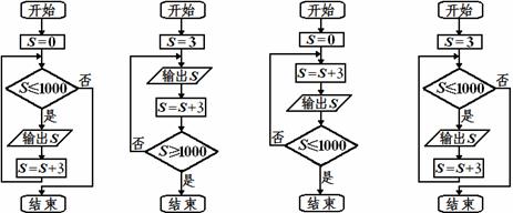 (8)有编号为1,2,…,1000的产品,现需从中抽取所有编号能被3整除的产品作为样品进行检验,下面是四位同学设计的输出样品编号的程序框图: