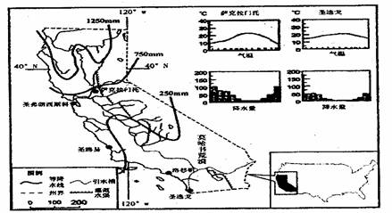材料:由于该州南方的降水量不足,自二十世纪初便开始进行大规模的资源调配工程建设,使南方农业得到发展。自1 946年起,该州的农业生产居美国的第一。
