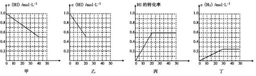 H2(g) + I2(g) ,当HI气体的起始浓度为1mol/L,H2和I2气体的起始浓度为0时,出现如下可能的图像