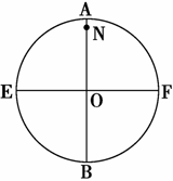 解析:选B。A、B点为晨、昏线的分界点,E、F平分晨线、昏线,则E、F点都在赤道上。