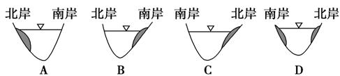 13.图中阴影部分为河流堆积物,受地转偏向力的影响,正确表示南半球河流自西向东流的是( )