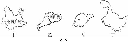 读图2我国四个省级行政区轮廓图,回答12-13题。