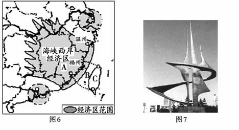 (3)图7为福州市市标--“三山一水”雕塑,“三山”指的是_________、乌山、屏山;“一水”指的是_________江,它象一条玉带“绕”过福州。