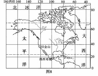 (2)美国最大的高新技术产业中心是位于旧金山东南的______。旧金山位于墨西哥城的