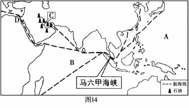 (2)图中C是__________湾,该海湾及其沿岸地区的_________(矿产)资源非常丰富,多这里输出的矿产向东经马六甲海峡主要运往亚洲发达国家--_____________。