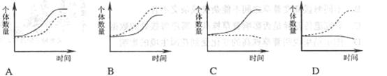 16.(09上海卷)在光照下,将等细胞数量的衣藻和大肠杆菌分别接种到只含无机盐的培养液中培养,结果是(虚线和实线分别表示大肠杆菌和衣藻的生长曲线)