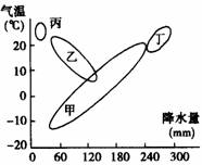 读图,图中甲、乙、丙、丁所对应的气候正确的是